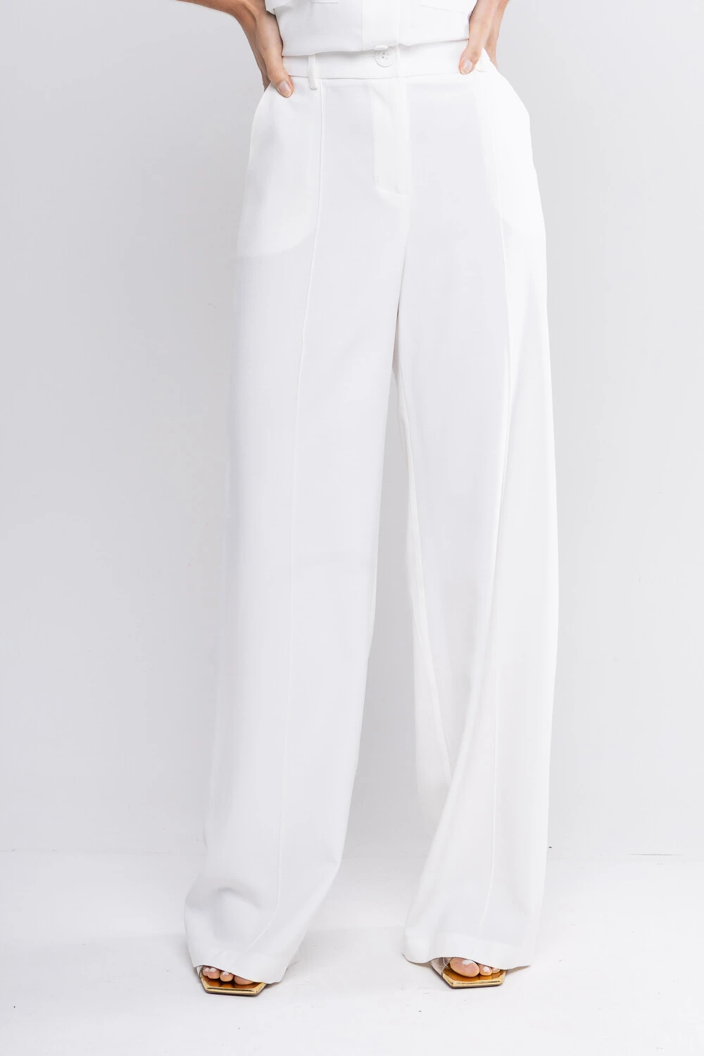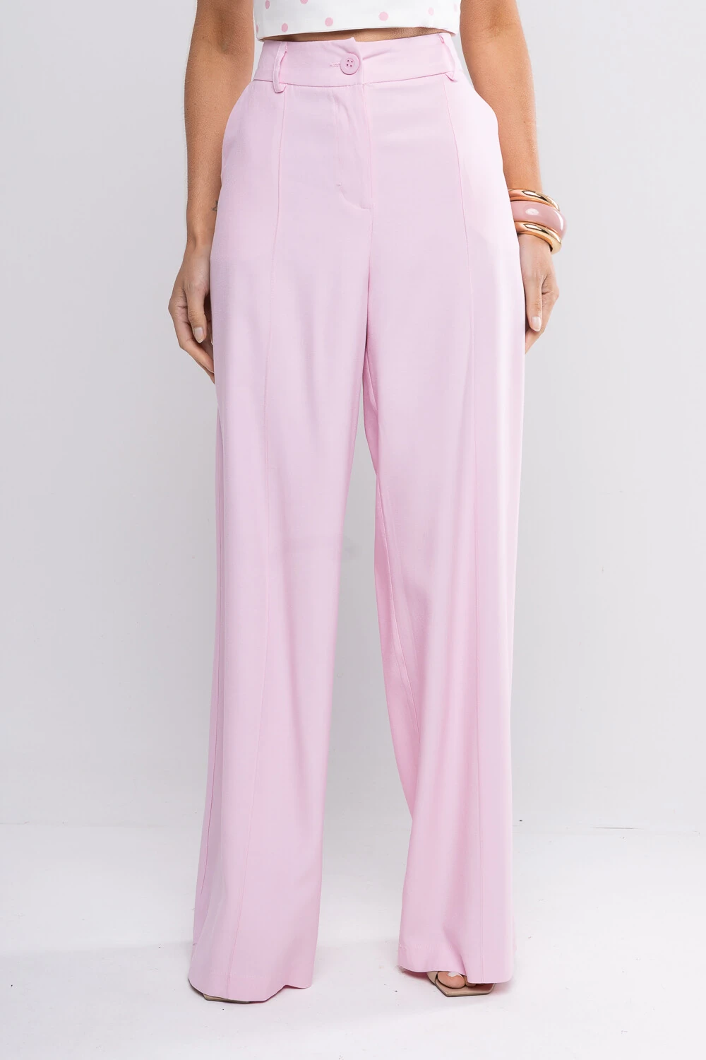CALÇA WIDE LEG DE CINTURA ALTA EM ALFAIATARIA DE VISCOSE. POSSUI FRISO NAS PERNAS, CINTURA COM ELÁSTICO NA TRASEIRA. FECHAMENTO COM ZÍPER E BOTÃO. POSSUI BOLSOS FACA E TRASEIROS. MODELAGEM AMPLA COMPOSIÇÃO - 87%VISCOSE 13%POLIÉSTER