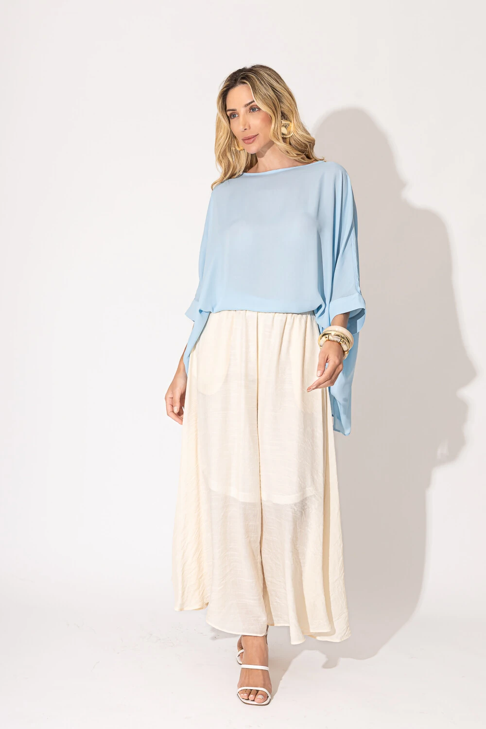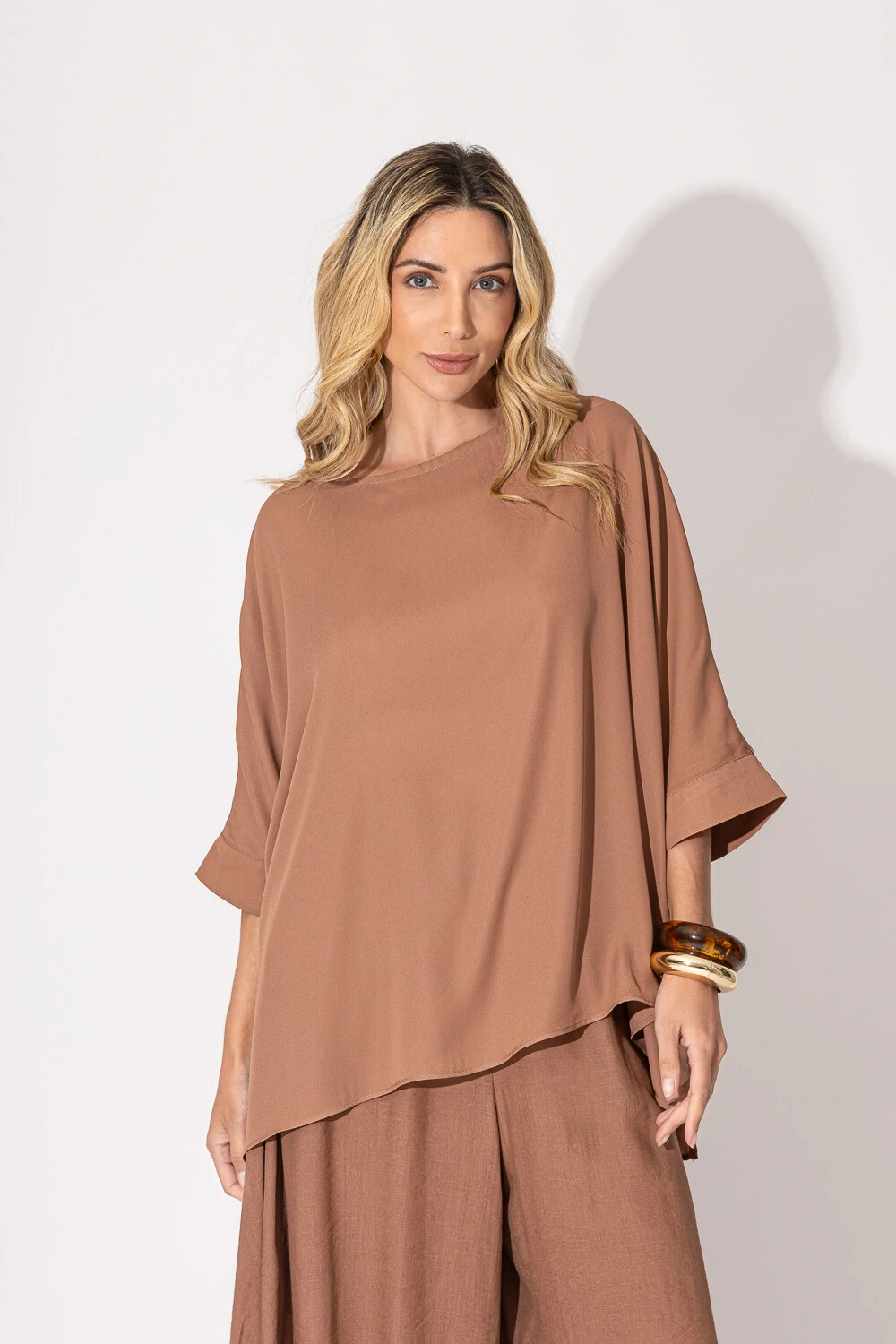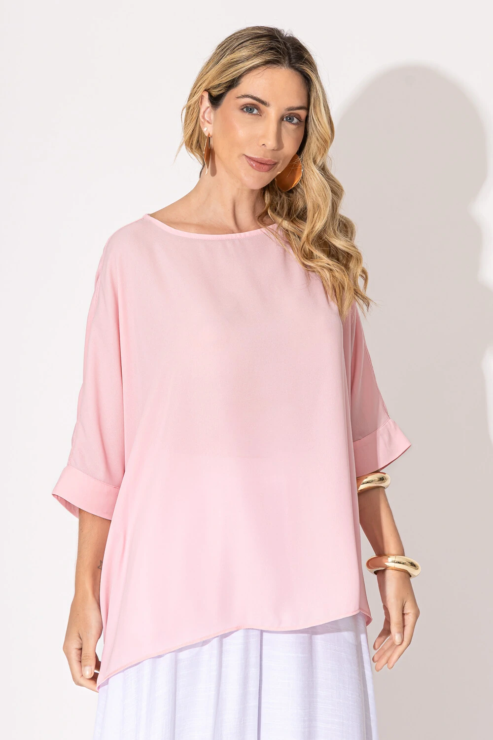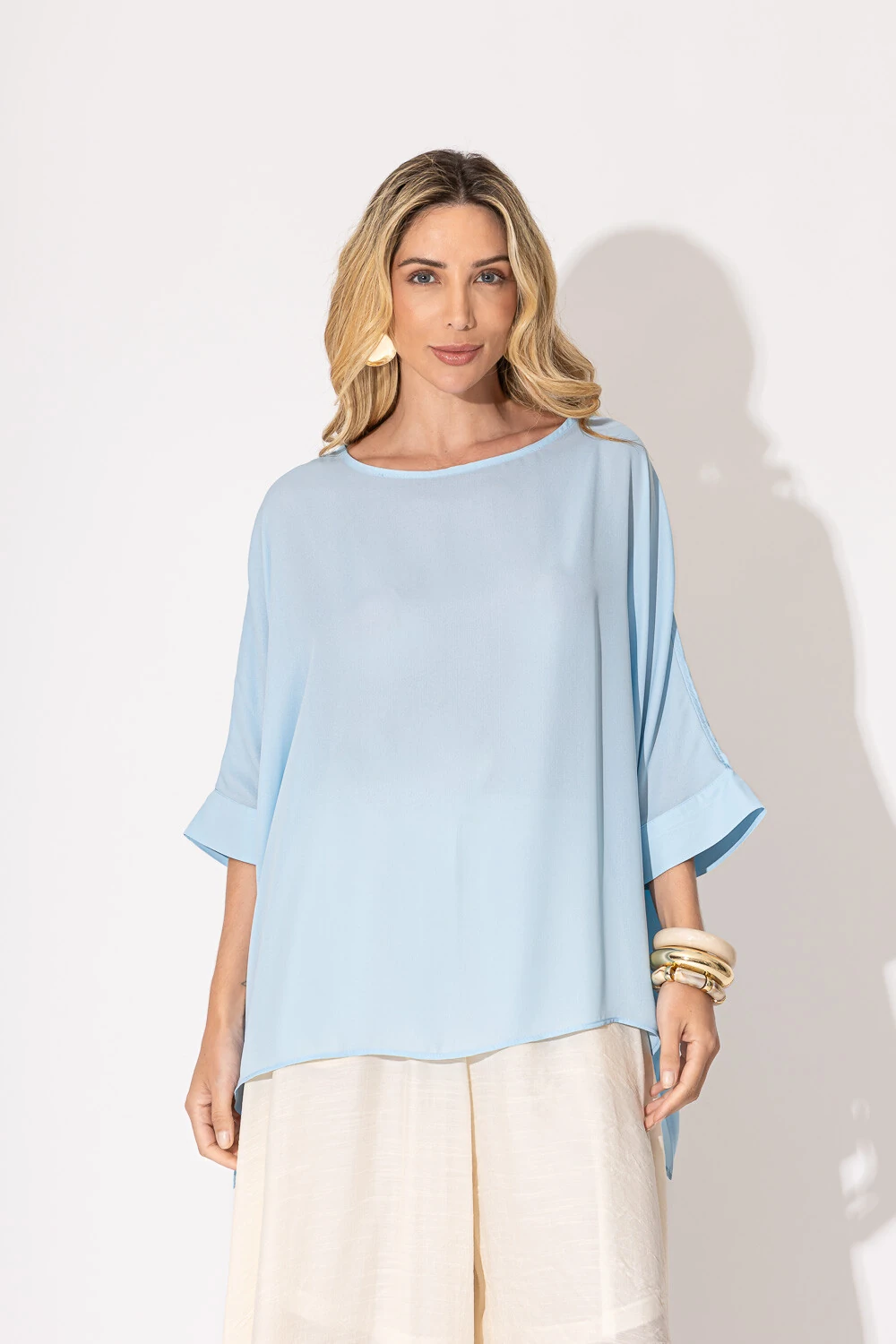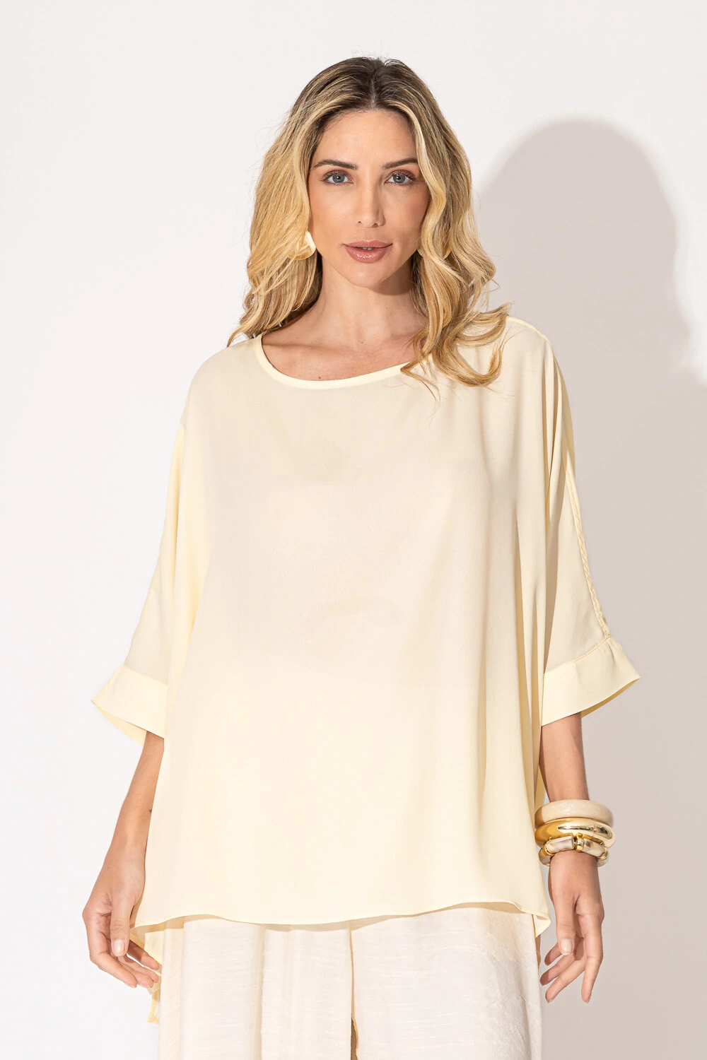 Bata básica de tamanho único, confeccionada em um crepe leve e confortavél. Possui gola careca e mangas curtas, perfeita para compor produções práticas e versáteis em qualquer ocasião. COMPOSIÇÃO: 100% POLIÉSTER