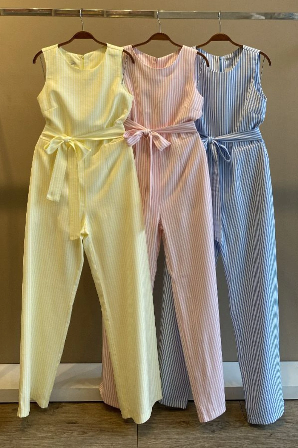 MACACÃO AURORA confeccionado em alfaiataria de viscose modelagem pantalona.