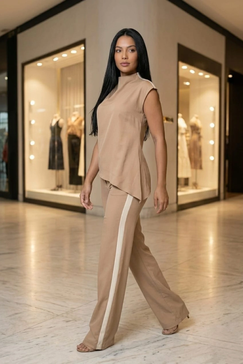 Confeccionado em alfaiataria de viscose (Marant), esse conjunto une conforto e elegância.