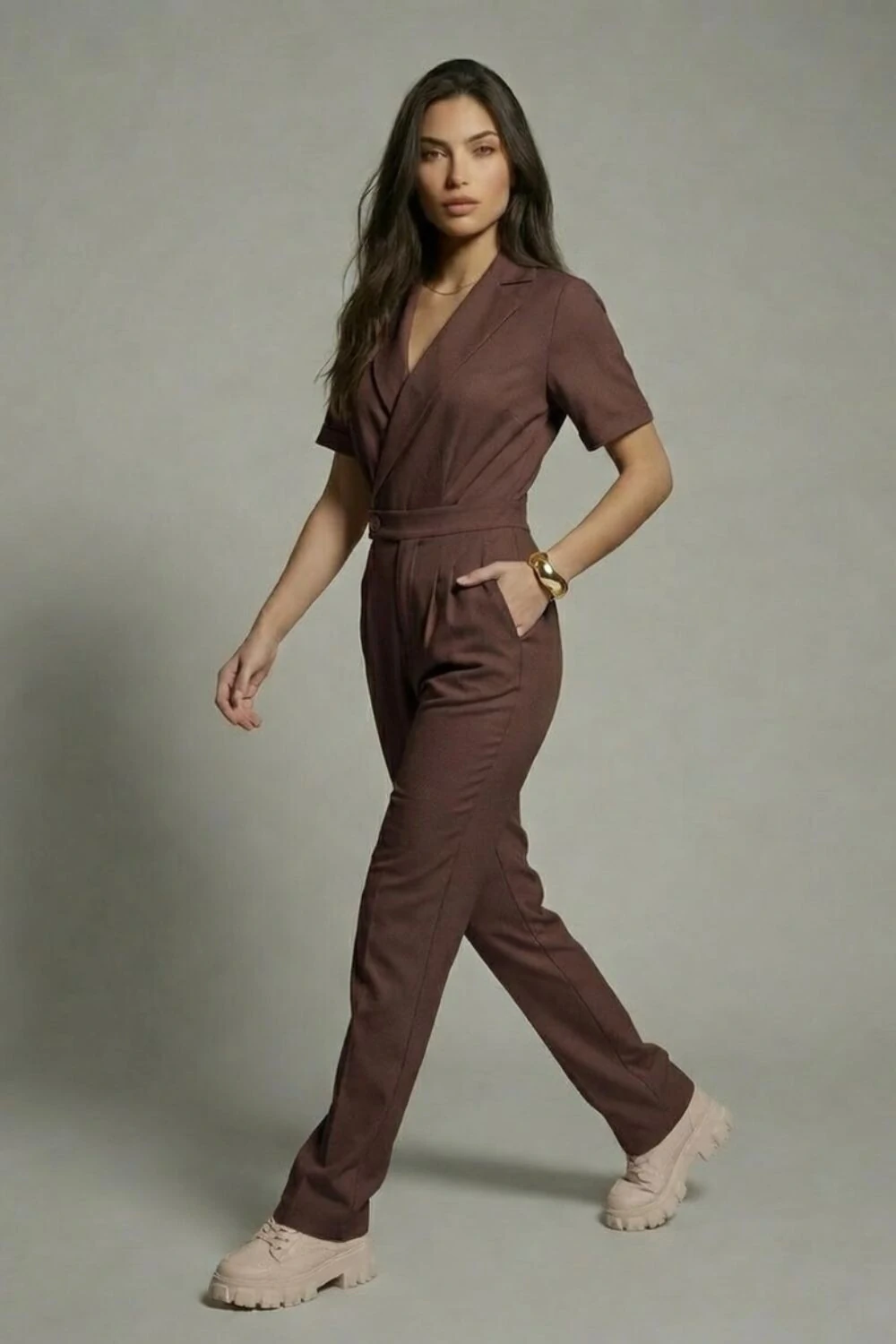 MACACÃO BETINA confeccionado em alfaiataria de viscose com modelagem reta esse macacão além de ser super estiloso é muito confortavél.