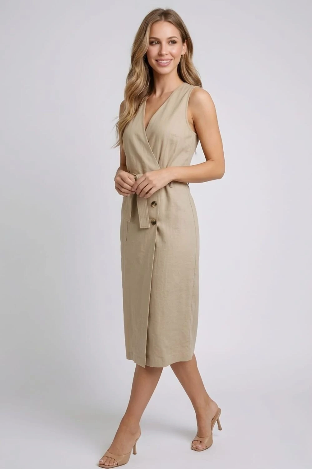 Acompanha cinto faixa que proporciona ajuste personalizado, seu caimento é leve e estruturado , ideal para destacar a silhueta sem perder o conforto.